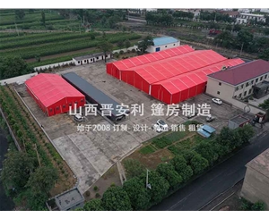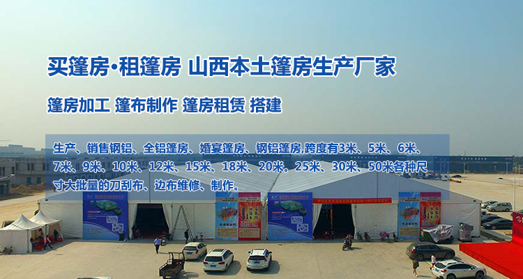 山西晉安利篷房制造有限公司,位于山西省太原市。我們專注設計、生產、制造、銷售、租賃各種跨度、尺寸的篷房。根據(jù)用戶要求提供訂制服務。 我們從一個小作坊起步,發(fā)展成為篷房、展覽設備的生產廠家,起初的產品主要用于戶外婚禮、房產奠基促銷、汽車展、服裝展、啤酒節(jié)、音樂節(jié)等各種展會、會展、會議會務活動,我們以質量和服務贏得了客戶的信任。 此外,我們還為制造業(yè)、物流業(yè)、商品流通業(yè),建設戶外裝配式店鋪、臨時倉庫,裝配式體育館,臨時廠房等。 除了生產制造外,我們還維修所有篷房配件,如各種厚度、不同尺寸的頂布、邊布、扣眼釘、拉繩、拉鏈等,凡本公司的產品用戶均可享受篷布免費維修。